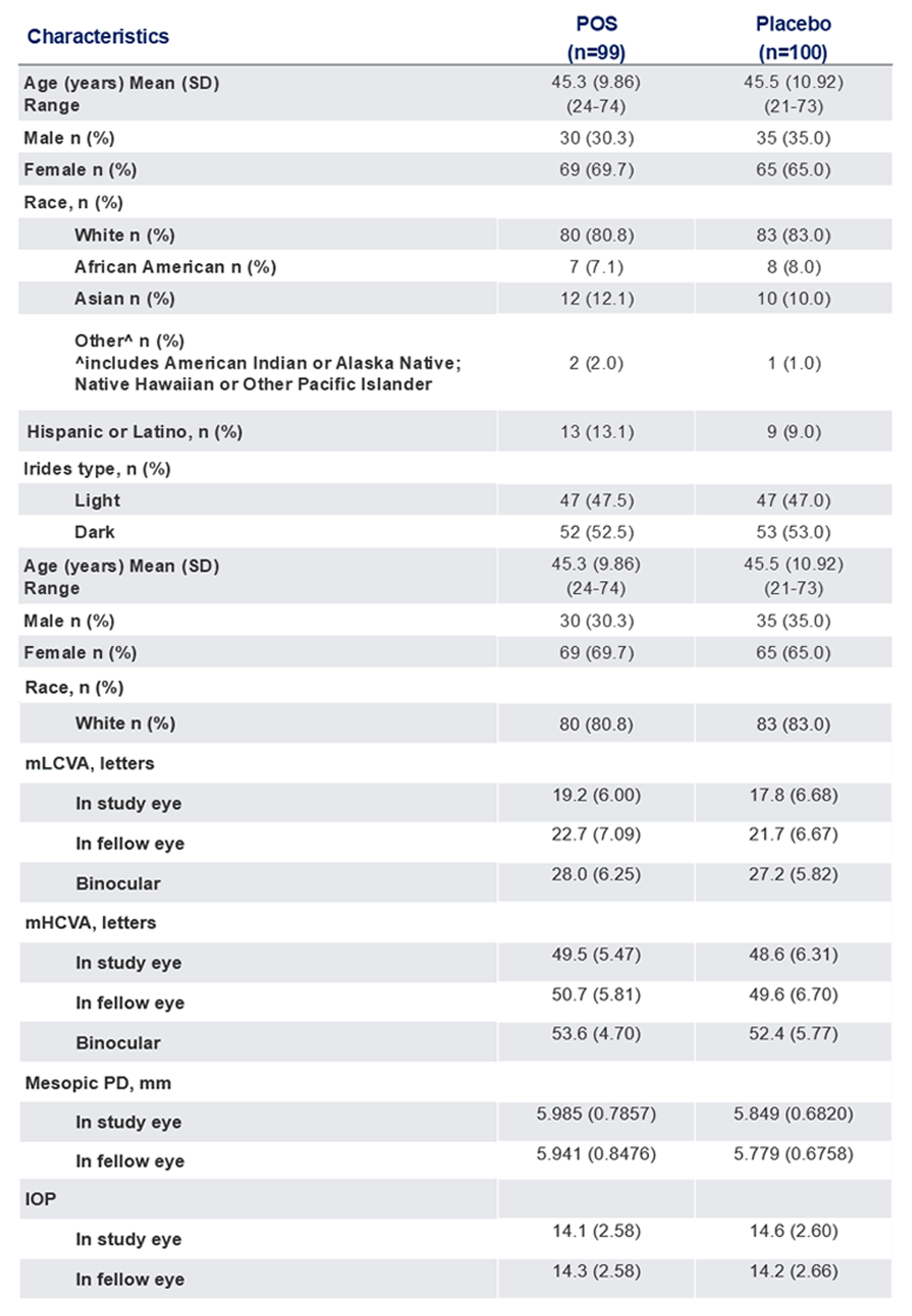 POS, phentolamine ophthalmic solution 0.75%; mLCVA, mesopic low-contrast visual acuity.