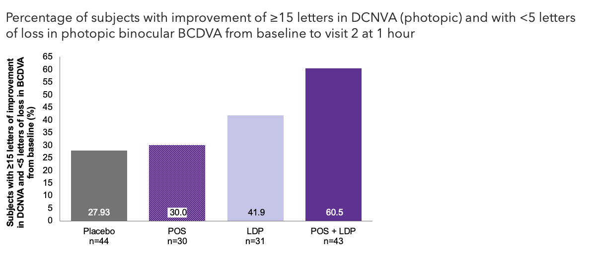 BCDVA, best-corrected distance visual acuity; DCNVA, distance-corrected near visual acuity; LDP, low-dose pilocarpine; POS, phentolamine ophthalmic solution.