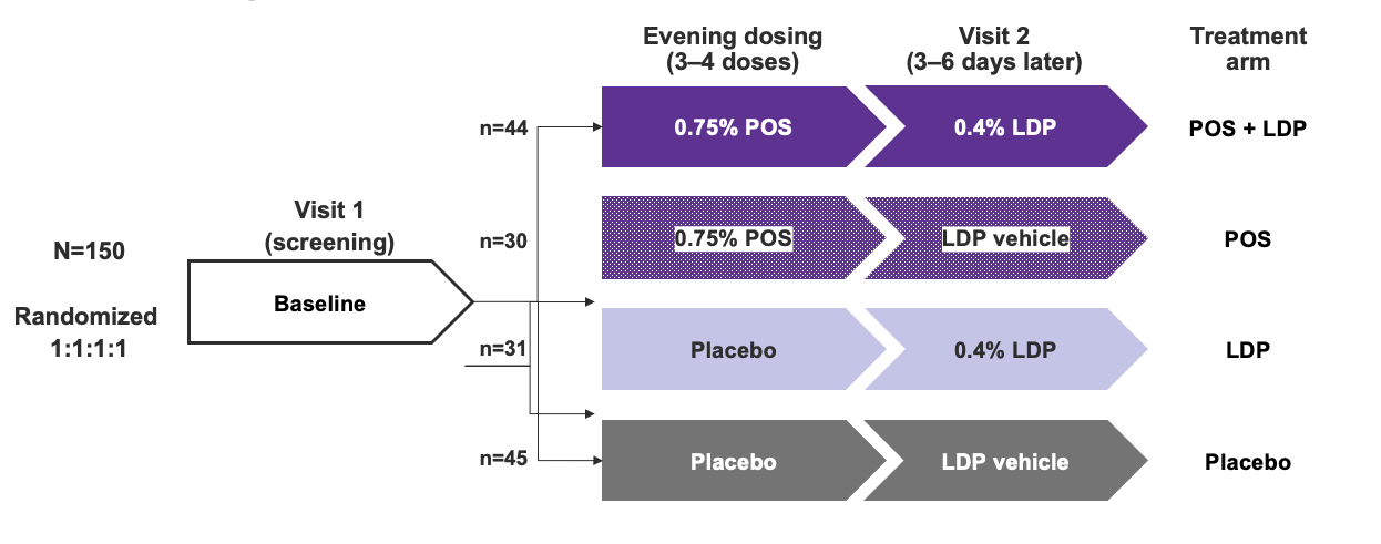 DCNVA, distance-corrected near visual acuity; LDP, low-dose pilocarpine; POS, phentolamine ophthalmic solution.