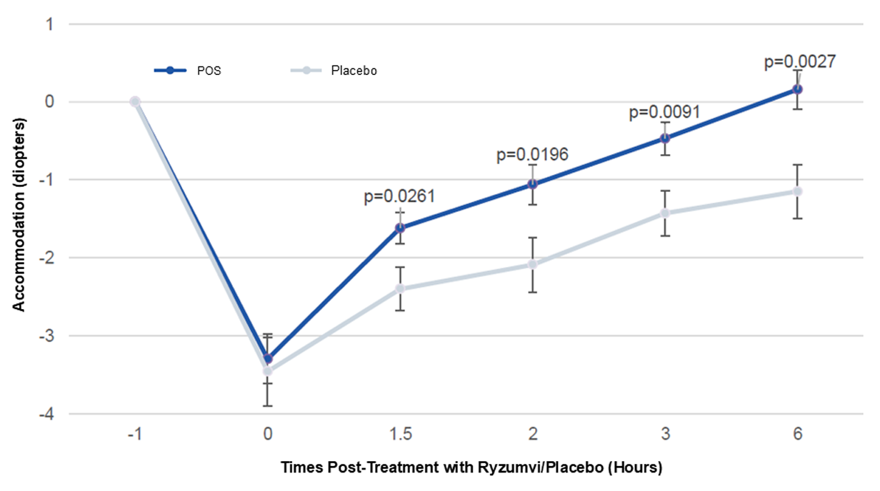 - No significant differences in BCDVA were observed between Ryzumvi and placebo treatment at any time point when measuring BCDVA under glare or photopic lighting minus glare conditions.