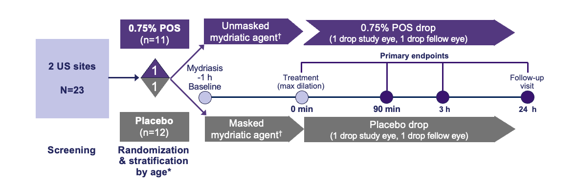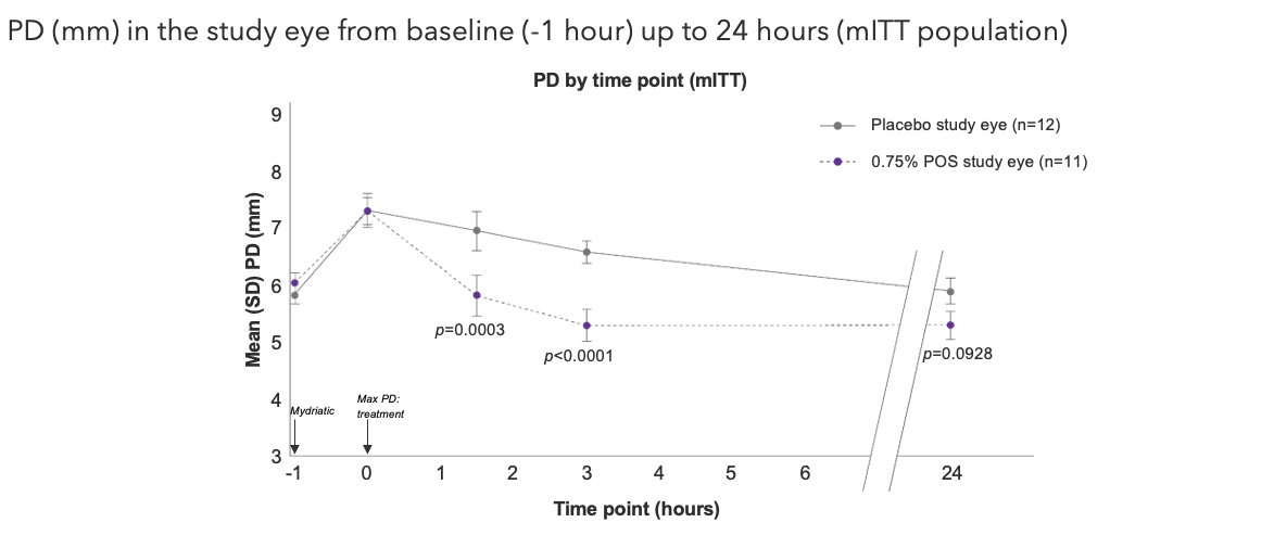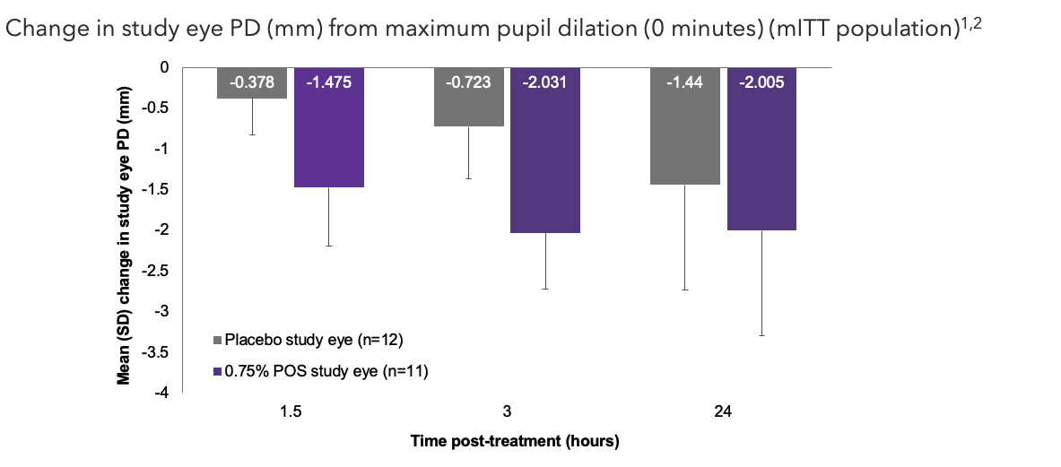 *The mITT population included all randomized subjects who received 1 drop of study medication in the study eye and then had at least 1 scheduled post-treatment PD measurement during visit 1 in the study eye.2mITT, modified intention-to-treat; PD, pupil diameter; POS, phentolamine ophthalmic solution.
